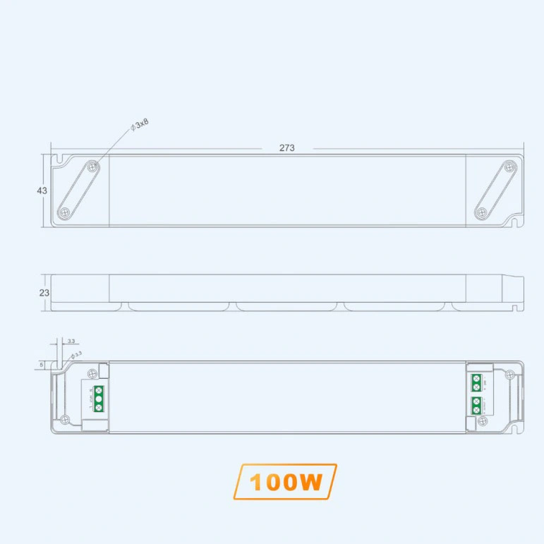 Professzionális LED-meghajtó-szállítóként Kínában a STARWELL gyár kiváló minőségű, 100 W-os, 0-10 V-os, állandó feszültségű, fényerő-szabályozó LED-meghajtót szeretne kínálni, amely nagy hatékonyságú áramköri kialakítást alkalmaz, nagy teljesítménytényezővel, alacsony hullámzajjal és egyéb előnyökkel. Csendesen és megbízhatóan működik, átfogó túlterhelés-, túlfeszültség- és rövidzárlatvédelmet nyújt. Alkalmas különféle állandó feszültségű LED-alkalmazásokhoz, amelyek rugalmas fényerő-szabályozást igényelnek, például kereskedelmi világításhoz, kirakatokhoz és beltéri díszvilágításhoz.