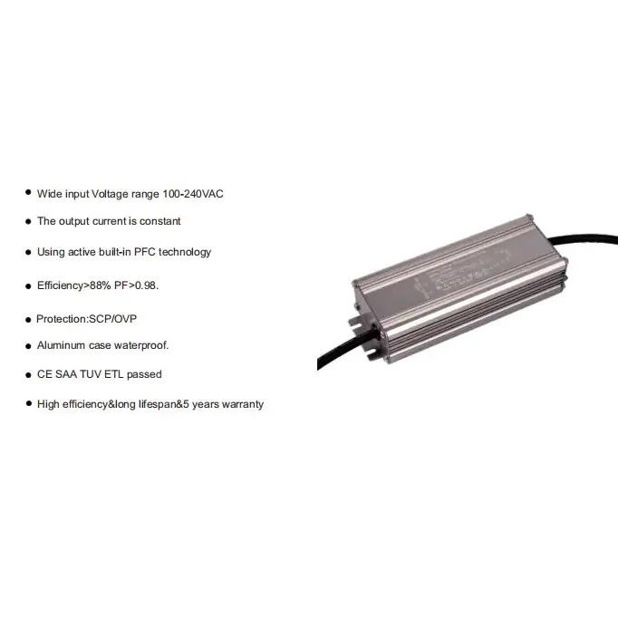 A STARWELL kiváló minőségű, 1200 mA-es állandó áramú vízálló LED-meghajtó, kifejezetten kültéri/nedves környezetben használható LED-es világítótestekhez, kompatibilis a 10-40 W-os utcai lámpákkal, kerti lámpákkal, víz alatti lámpákkal, reklámfénydobozokkal és más többféle forgatókönyvvel. A nagy pontosságú állandó áramú chip alkalmazásával a kimeneti áramhiba ≤ ± 3%, pontosan és stabilan 1200 mA-en tartva, alapvetően kiküszöböli a villogást (villogás mélysége <5%) és a fénycsökkenési problémákat, ami több mint 30%-kal meghosszabbíthatja a LED-es lámpatestek élettartamát; Az IP67-es vízálló tömítési technológiával + vízálló edényezési technológiával felszerelt vízálló szint 30 percig nem éri el a szivárgást 1 méteres víz alatt, képes megbirkózni a zord környezetekkel, például esővel, fröccsenő vízzel és porral, több mint 50 000 órás folyamatos kültéri élettartammal, így megbízhatóbbá teszi a hosszú távú használatot.