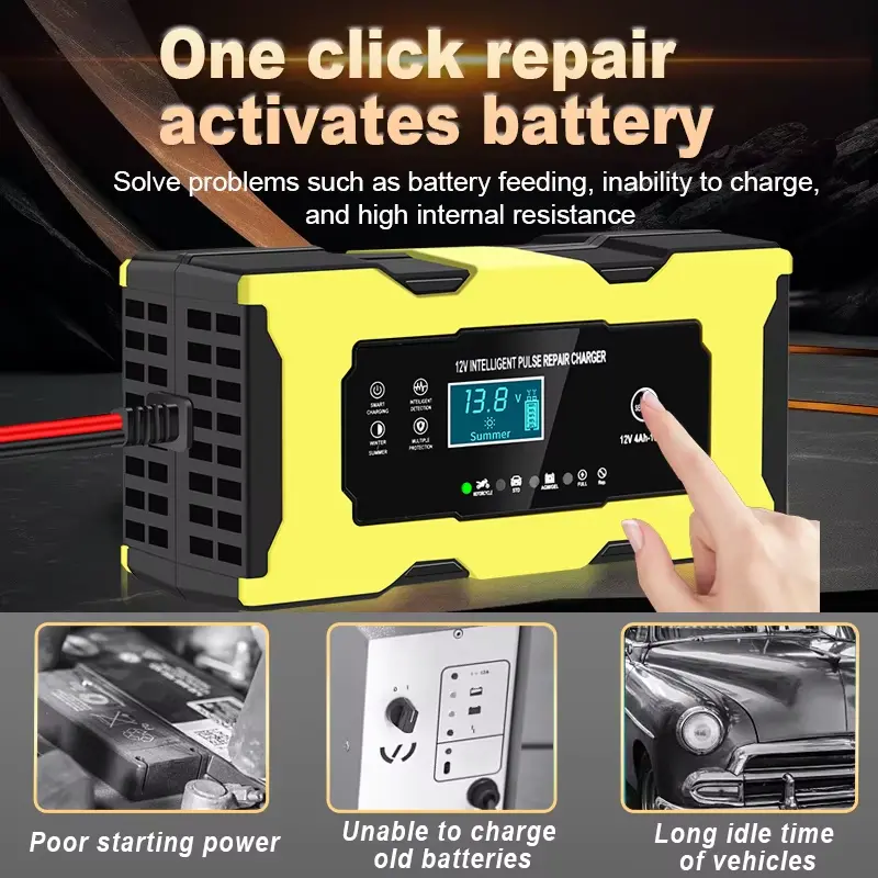 Impulzusáramot használ az ólom-szulfát kristályok lebontására az akkumulátorlemezeken, segítve az elöregedett akkumulátorok kapacitásának helyreállítását. |
