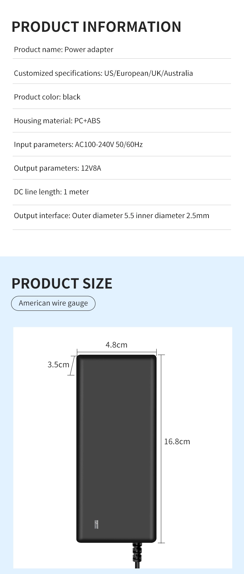 A STARWELL 12V 8A 96W asztali tápadapter egy nagy hatékonyságú tápegység, amelyet nagy teljesítményű elektronikus eszközökhöz terveztek. 12V ± 5%-os pontos kimenetével és 95%-os konverziós hatékonyságával ideális tápellátási partnerré válik ipari berendezések, orvosi műszerek, biztonsági rendszerek, asztali szintű elektronikus terminálok és egyéb forgatókönyvek számára. Széles feszültségű bemeneti kialakításával (AC 100-240V 50/60Hz) kompatibilis a globális hálózati szabványokkal, nincs szükség további konverterekre.