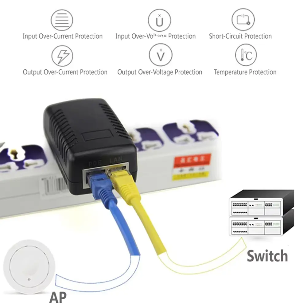 Tökéletes vezeték nélküli hozzáférési pontok (AP-k) táplálására irodákban, szállodákban és otthonokban, ahol a falra szerelt telepítés helytakarékos.