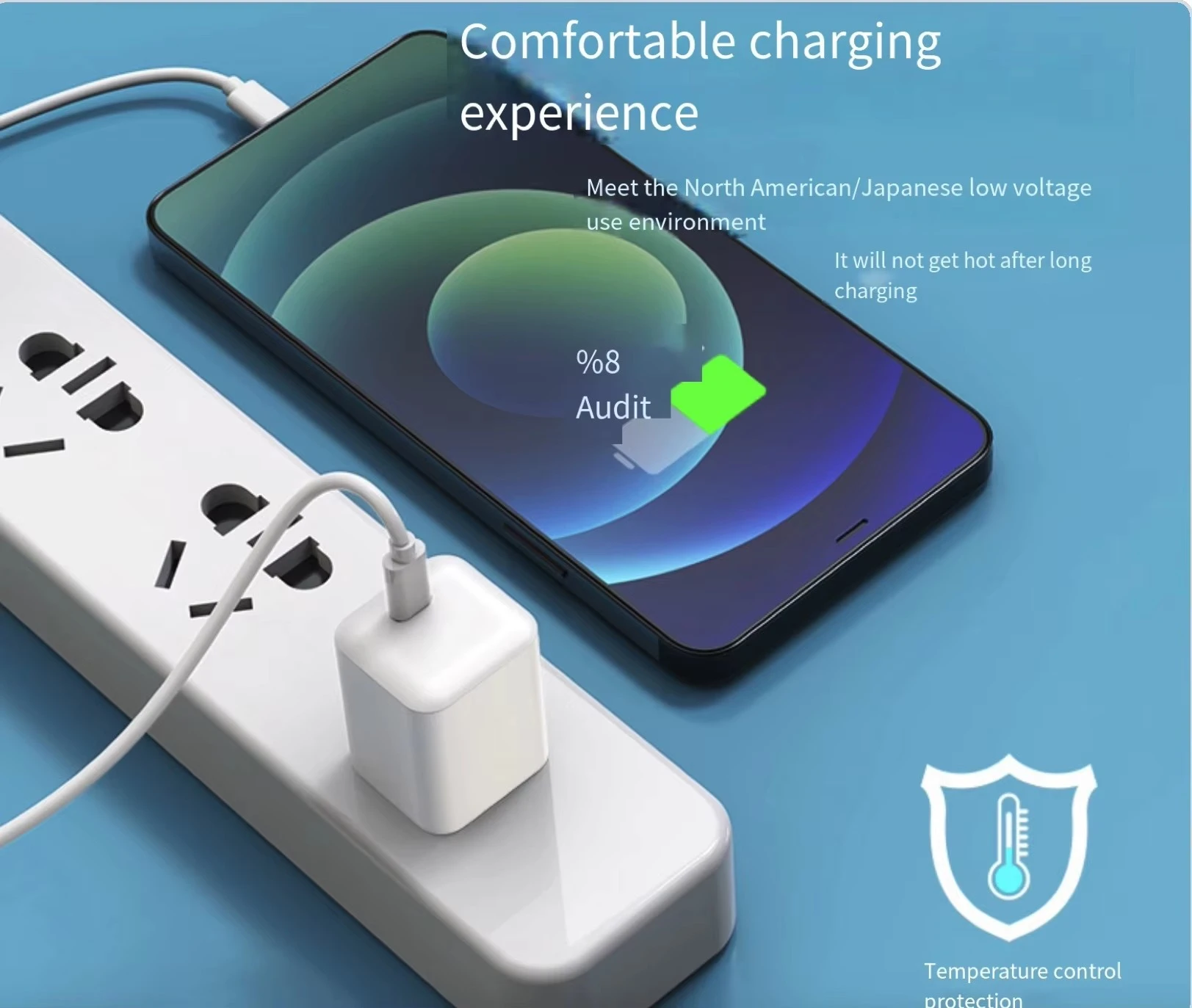 A STARWELL kiváló minőségű 20 W-os Japan Plug Quick Charger, más néven 20 W-os PD gyorstöltő USB-C és Type-C portokkal, támogatja az iPhone-ok és Android-eszközök gyorstöltését, 30 perc alatt elérve a 0-50%-ot. Többféle védelemmel rendelkezik, beleértve a túláramot, a túlfeszültséget és a rövidzárlatot, így biztosítva a biztonságos és megbízható teljesítményt. PC tűzálló anyagból készült, megfelel a CE és ETL tanúsítványoknak, így megfelel az EU biztonsági szabványoknak és javítja a piacra jutást.