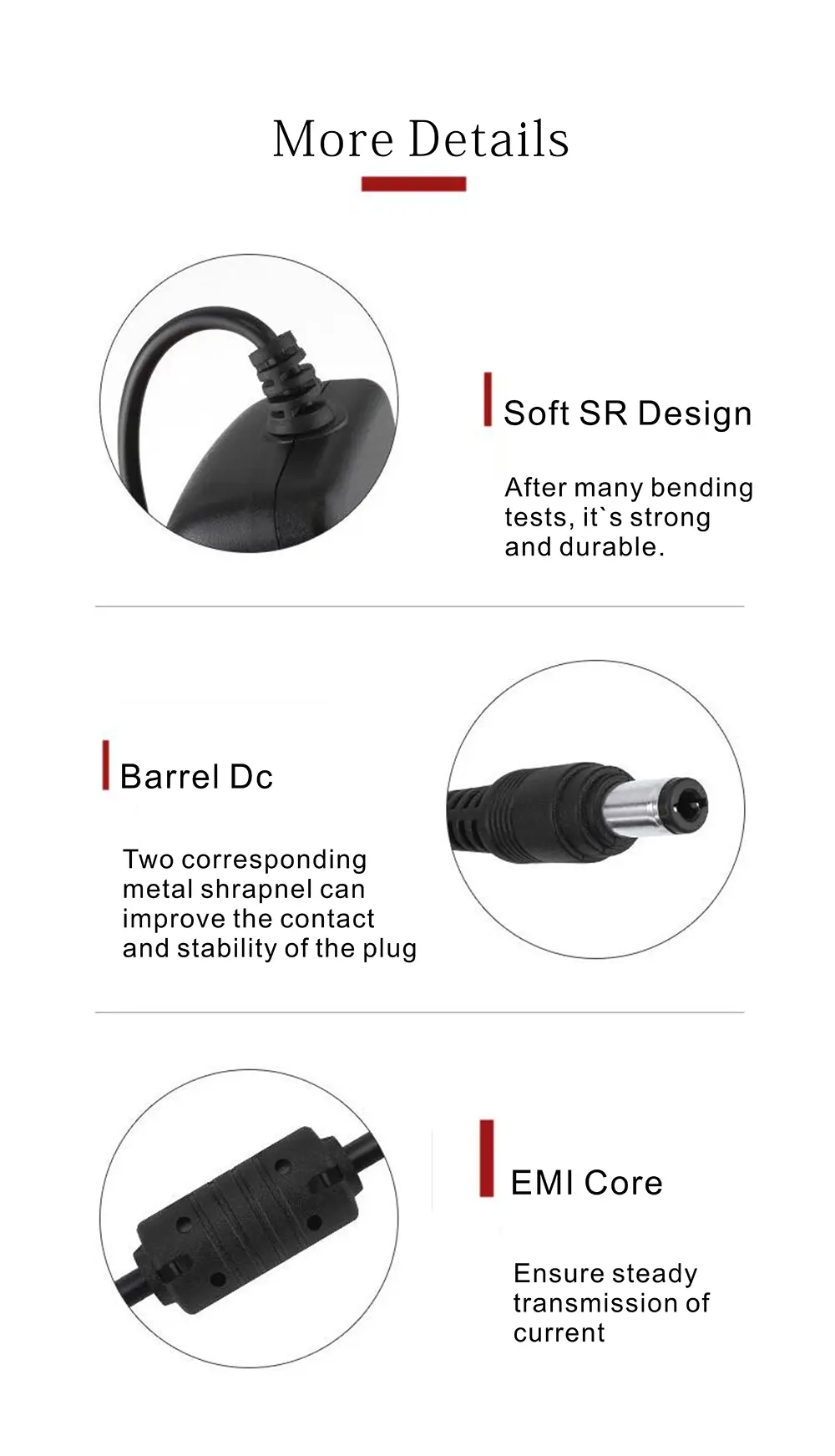 2. Power Draw: Az eszköz teljesítményének 72 W-nál kisebbnek kell lennie. A 3A-es adapter képes táplálni a 3A-t vagy annál kevesebbet fogyasztó eszközöket 24V-on.
