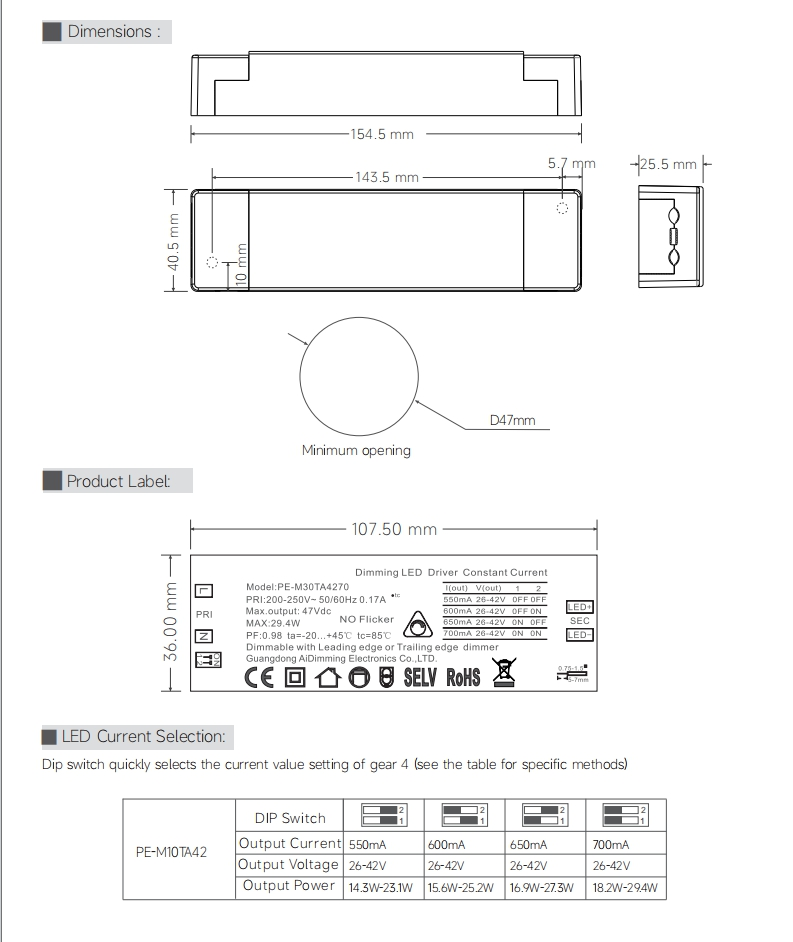 A biztonság és a megbízhatóság tekintetében a nagy teljesítményű, állandó áramerősségű fényerőszabályzó LED-illesztőprogram megfelel az olyan globális szabványoknak, mint a CE és az UL, beépített túlfeszültség-, túláram- és rövidzárlatvédelemmel. A meghajtó széles bemeneti feszültségtartományt is kínál (általában 100-240 V AC), amely alkalmazkodik a különböző regionális elektromos hálózatokhoz. Kompakt, hőálló háza (égésgátolt PC-anyagból) beltéri és félig kültéri telepítéseket is támogat, így alkalmas lakószobákba, kereskedelmi irodákba és kiskereskedelmi kiállítóterekbe, ahol precíz fényerőszabályozásra van szükség.