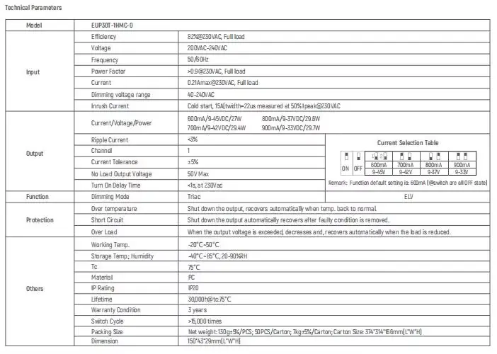 A LED-meghajtók professzionális gyártójaként és szállítójaként Kínában, a 30 W-os Triac fényerőszabályzó LED-illesztőprogramunk állandó áramerőssége egy teljesítményátalakító eszköz, amelyet kifejezetten közepes és nagy teljesítményű LED-es világítási rendszerekhez terveztek. Fejlett állandó áramszabályozási technológiát alkalmaz, hogy biztosítsa a LED-gyöngyök stabil működését névleges áramerősséggel, hatékonyan meghosszabbítva a lámpa élettartamát és javítva a fényhatás konzisztenciáját. Az állandó áramerősség-szabályozású LED-meghajtó nagy igényű világítási forgatókönyvekhez, például kereskedelmi világításhoz, ipari világításhoz, kültéri reflektorokhoz és növénynövekedési lámpákhoz alkalmas.
