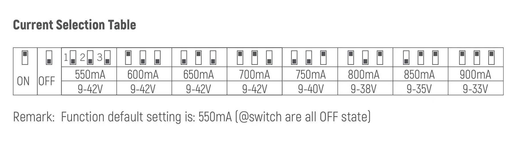 Kimeneti áram: állítható, a részletekért lásd az áramkiválasztási táblázatot