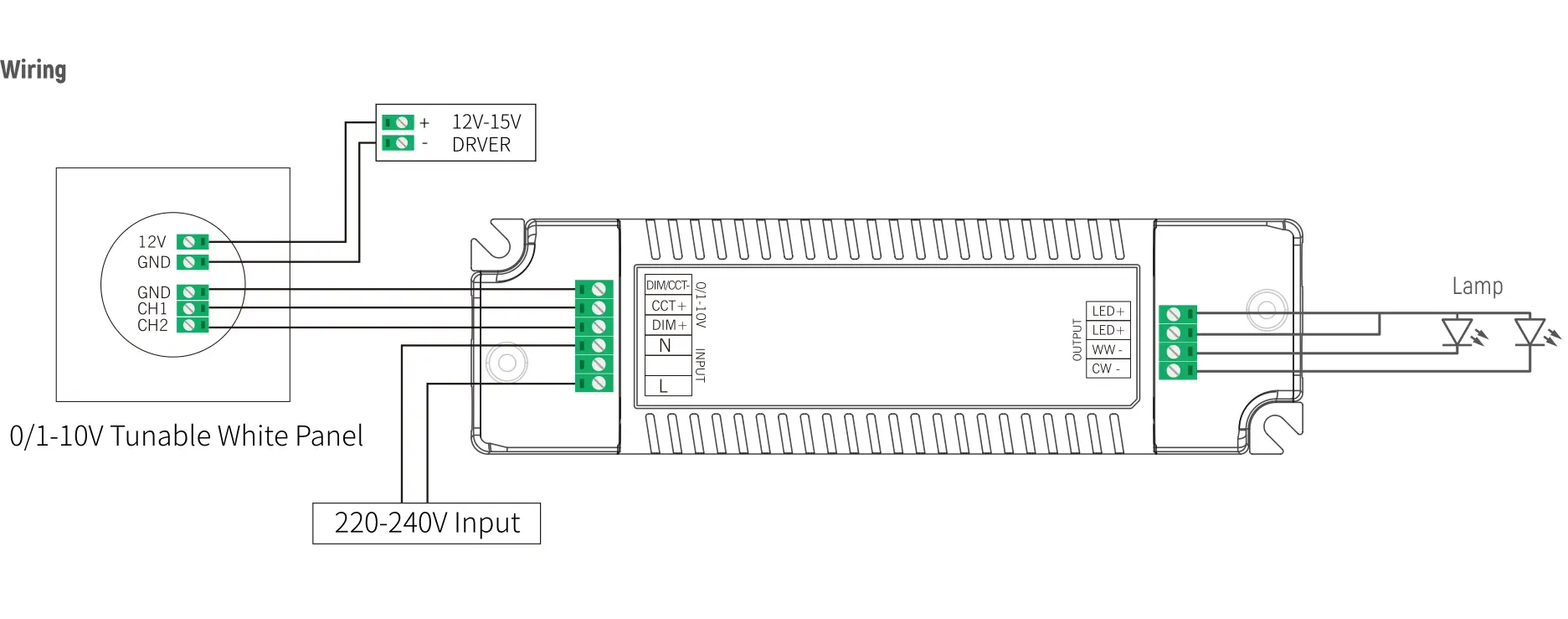 Pontosabban, ez a meghajtó kiemelkedő AC-DC energiaátviteli hatékonysággal rendelkezik, hatékonyan alakítja át a bemenő váltakozó áramot egyenárammá, amely alkalmas LED-es működésre, egyensúlyt teremtve az energiamegtakarítás és a stabilitás között. A felhasználók függetlenül és zökkenőmentesen szabályozhatják a csatlakoztatott lámpatestek fényerejét és színhőmérsékletét szabványos 0-10 V-os analóg fényerő-szabályozó jellel. Ez azt jelenti, hogy nem csak a fokozatmentes fényerő-beállítást támogatja 0% és 100% között, hanem integrálja a színhőmérséklet tompítási funkciót is, lehetővé téve a felhasználók számára, hogy egyetlen gombbal szabadon válthassanak a meleg 2700K sárga fény és a frissítő 6500K hideg fehér fény között, így a különböző forgatókönyveknek és időpontoknak megfelelő fénykörnyezetet teremtenek. Ezért ideális 40 W-os beltéri LED világítás színhőmérséklet-tompító LED-meghajtóval, különösen alkalmas kereskedelmi terekbe, igényes otthonokba, irodai környezetekbe és szállodákba, ahol szigorúan megkövetelik a fényminőséget.