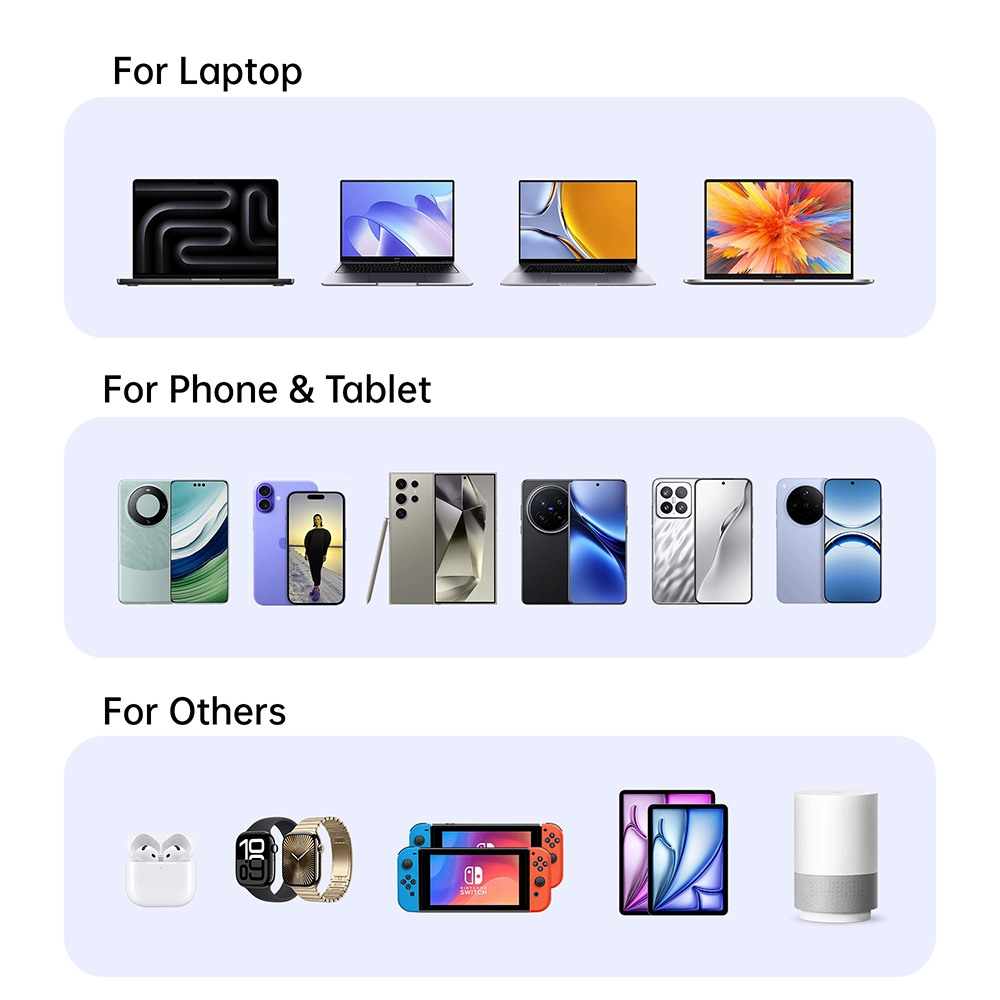 Univerzális kompatibilitás: Pd töltőnk Power Delivery (PD) technológiával van felszerelve, így sokféle eszközzel kompatibilis, beleértve az okostelefonokat, táblagépeket és még bizonyos laptopokat is. Ez a tökéletes töltési megoldás minden kütyüjének.