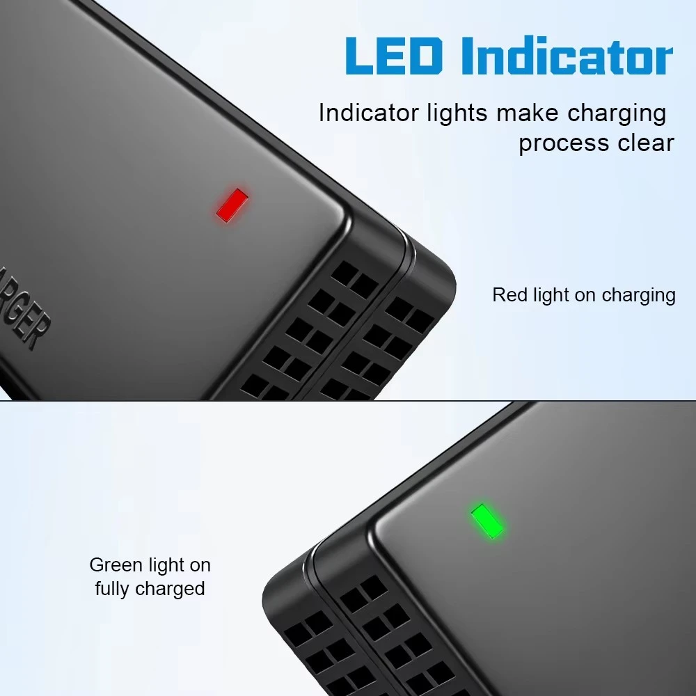 Robusztus teljesítménye ellenére a töltő kompakt és könnyű kialakítású, így könnyen hordozható. Akár otthoni, akár irodai töltőre van szüksége, akár a hátizsákban tarthatja az útközbeni feltöltéshez, hordozhatósága biztosítja, hogy mindig hozzáférjen a biztonságos és megbízható áramellátáshoz. Ez a tartós és felhasználóbarát 48 V-os töltő ideális társ a lítium-ion akkumulátorok egészségének és teljesítményének megőrzéséhez.