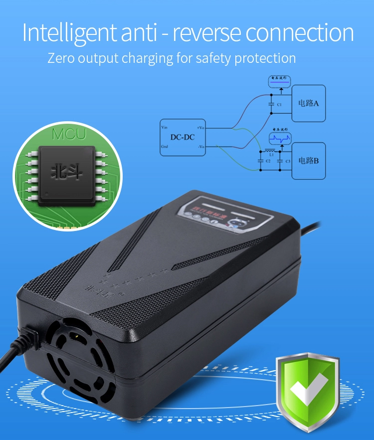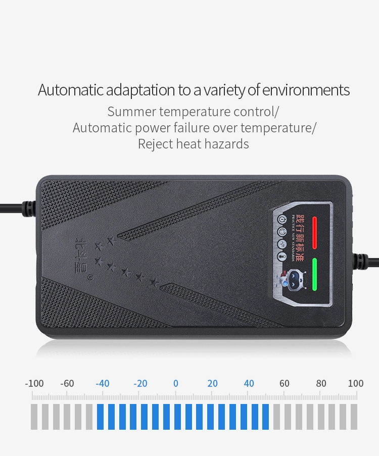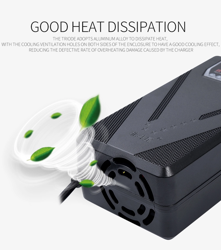 A hagyományos töltőkkel ellentétben a 48 V-os, 220 W-os intelligens elektromos jármű akkumulátortöltő intelligensen alkalmazkodik az akkumulátor állapotához, és optimális töltési görbéket biztosít.
