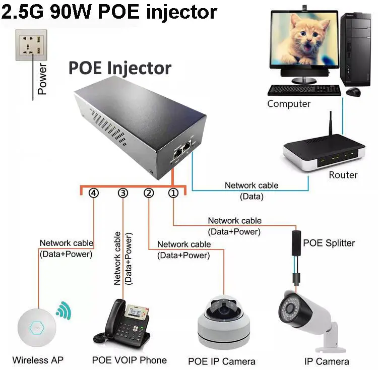 90W 2.5G POE befecskendező |