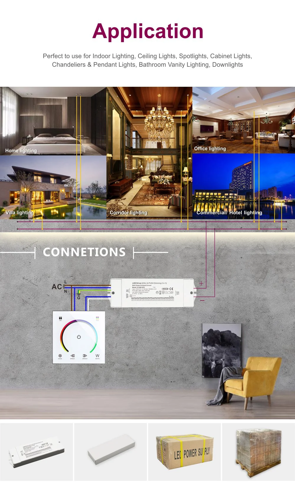 Legyen szó LED panelvilágításról az irodákban, LED-es mélysugárzókról a bevásárlóközpontokban, rejtett fénycsíkokról a szállodai folyosókon vagy kiemelő világításról az otthoni terekben, ez a meghajtó az ideális választás. A kompakt alumínium ötvözet ház teljes cseréppel kiváló hőkezelést és hosszú távú stabil működést biztosít. A beépített több védelmi áramkör túlfeszültség, túláram, rövidzárlat és túlmelegedés ellen átfogó biztonsági védelmet nyújt a teljes világítási rendszer számára.