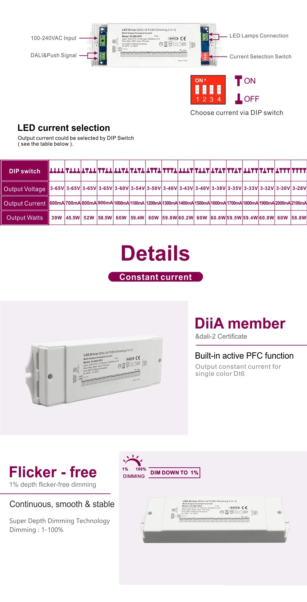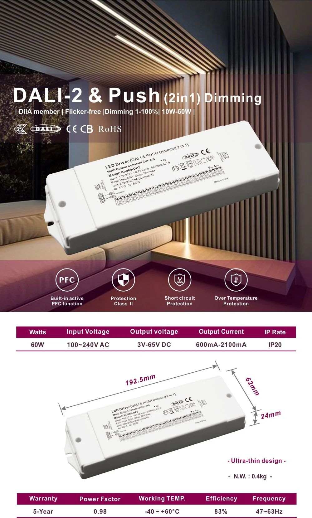 60W állandó áramú dali fényerőszabályzó CCT led meghajtó |