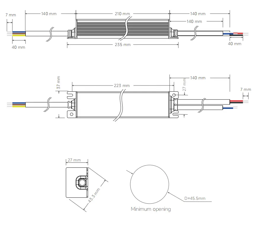 235 × 37 × 27 mm (H × SZ × Ma) |