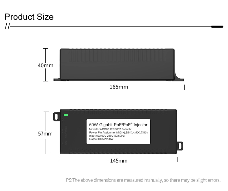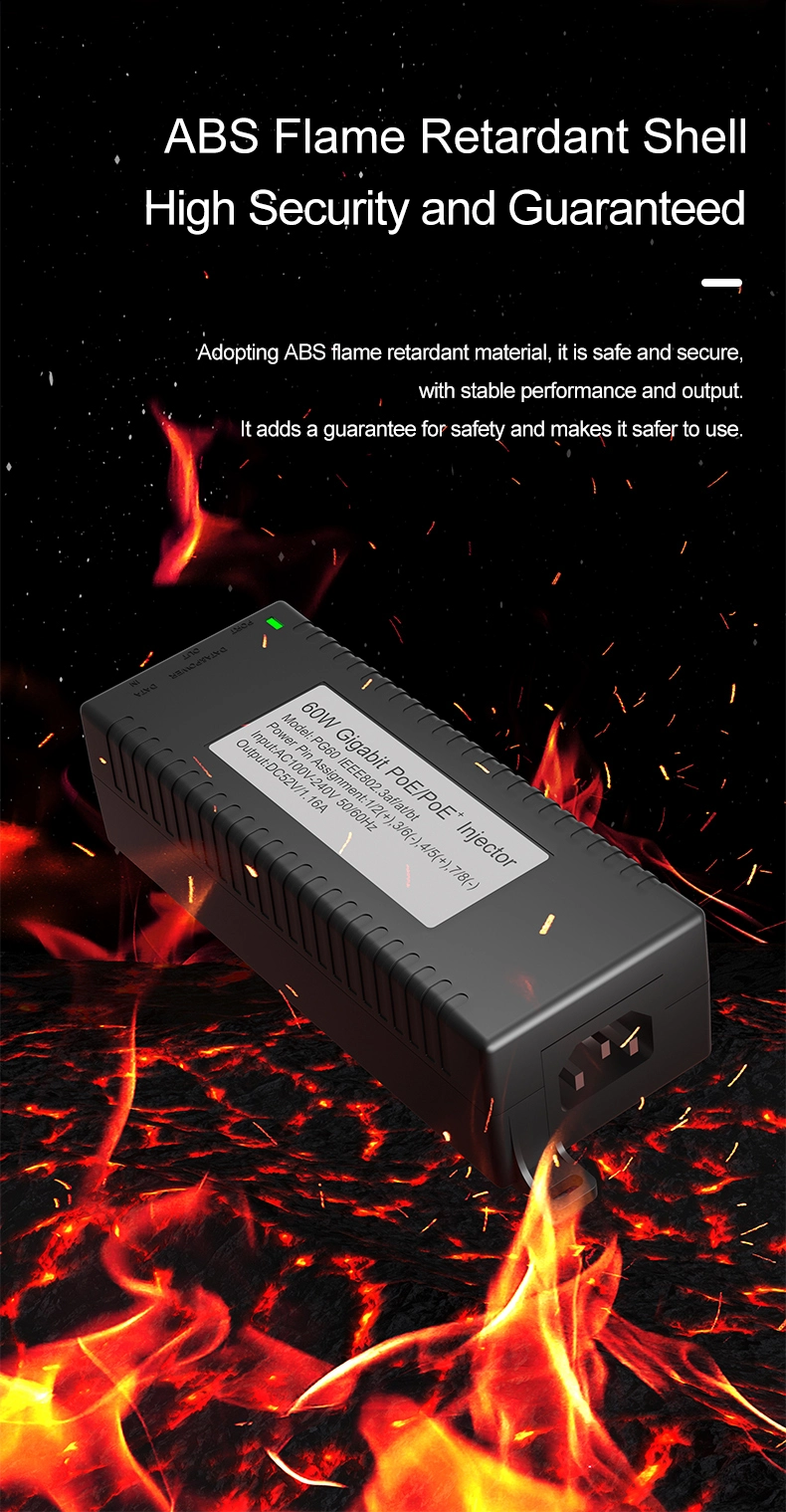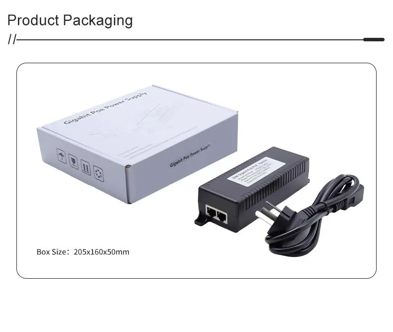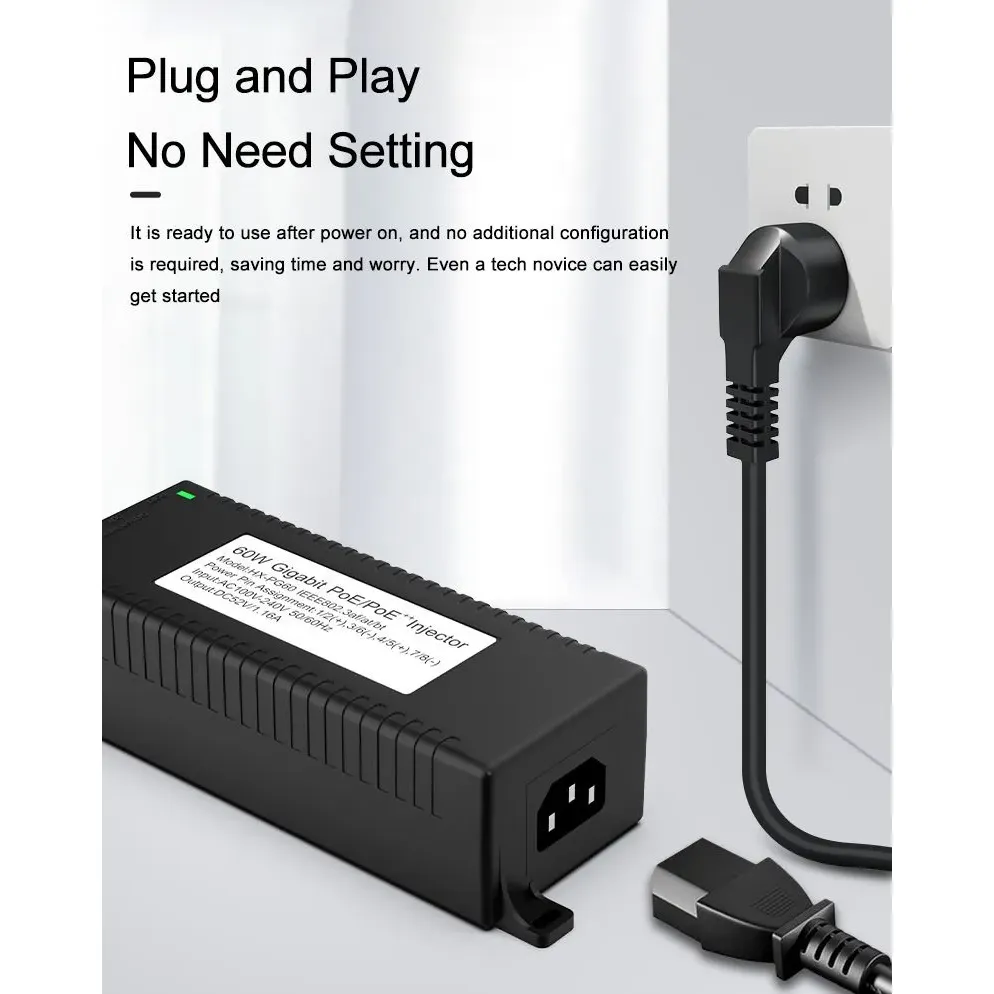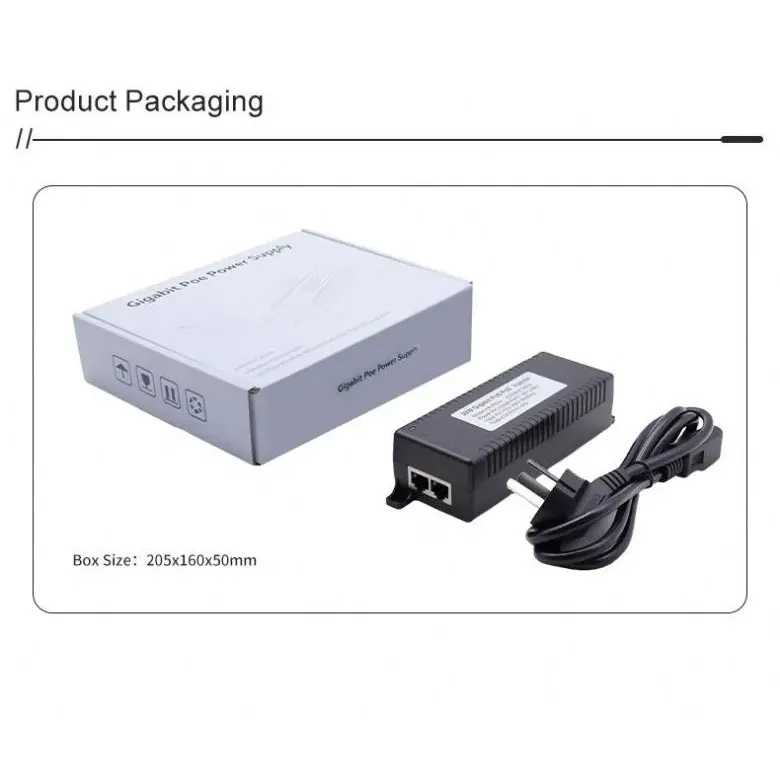 Biztonsági felügyelet: A gigabites 60 W-os asztali POE befecskendező az IP-kamerák biztonsági és hálózati eszközei számára stabil áramellátást biztosít az IP-kamerák és a PTZ-kamerák számára.