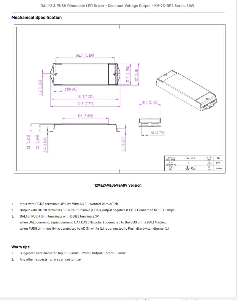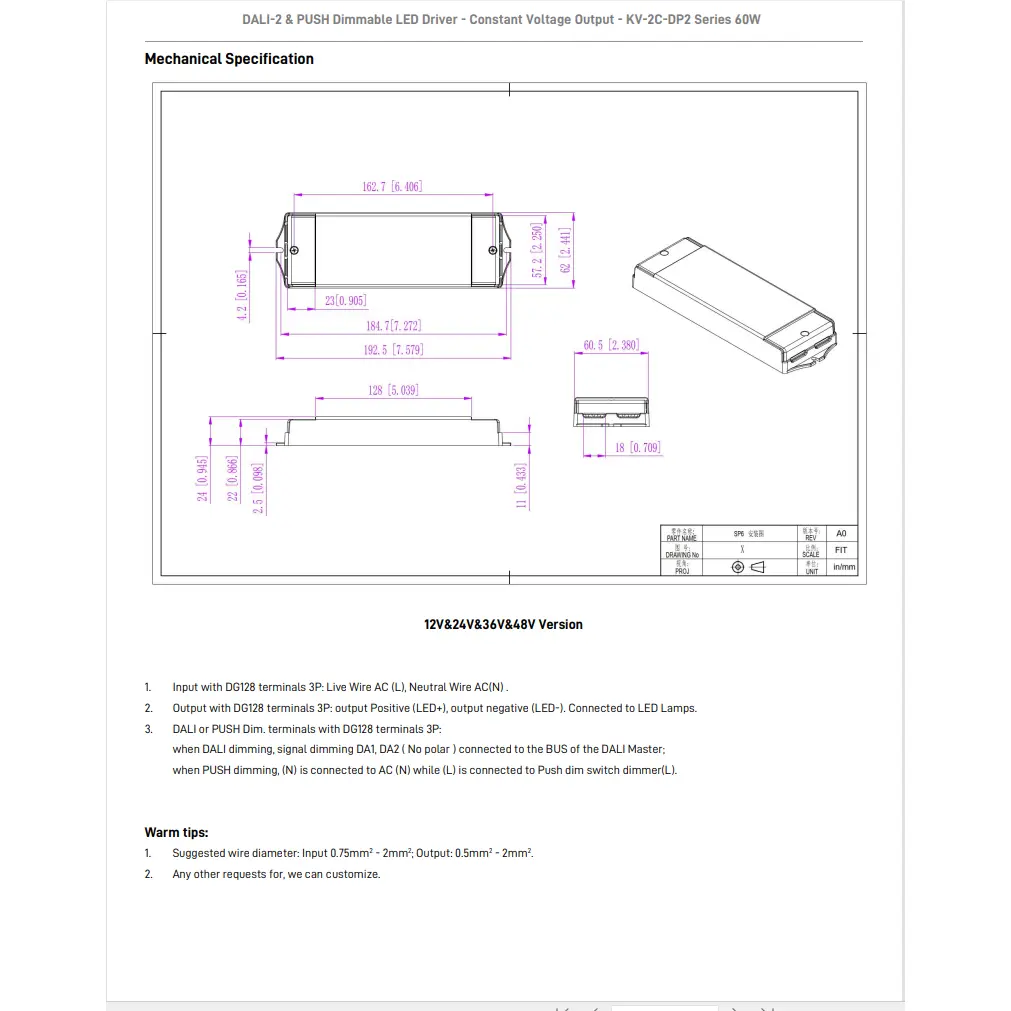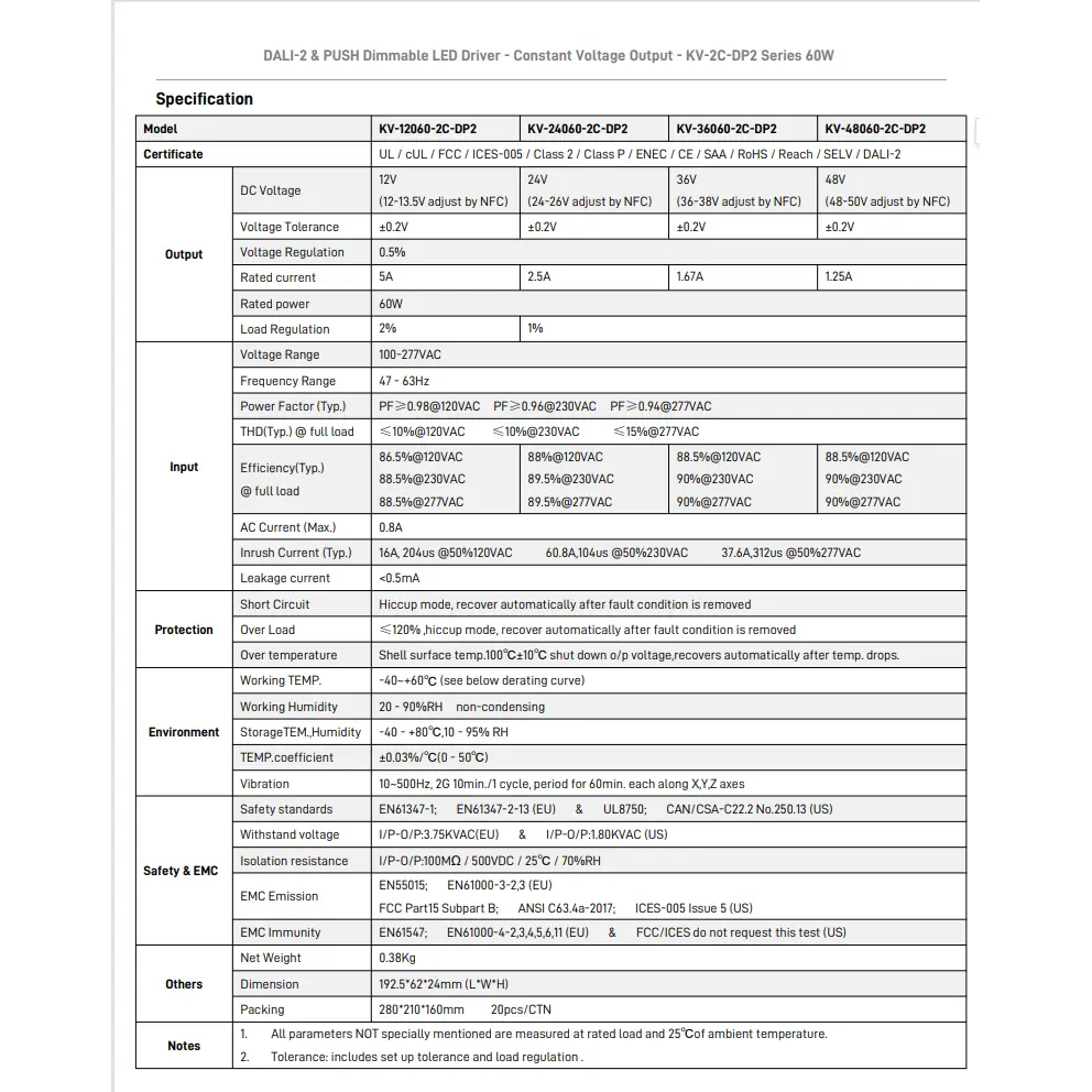 A vezető természetes légkonvekciós hűtést és teljesen zárt műanyag házat használ, amely alkalmas száraz vagy nedves beltéri környezetre.