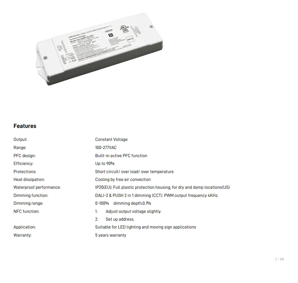 Ez a fajta illesztőprogram lehetővé teszi a felhasználók számára, hogy a fényerőt és a színhőmérsékletet (CCT) zökkenőmentesen állítsák be meleg fehérről hideg fehérre, miközben megtartják a LED-es lámpatestek, például panelek, szalaglámpák és alsó lámpák stabil teljesítményét.