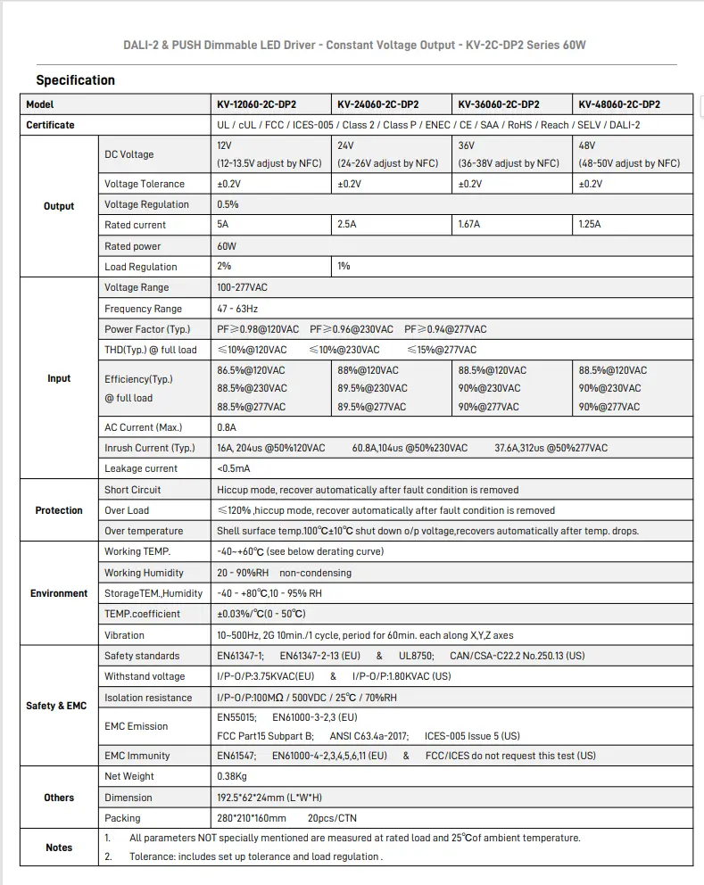 Tompítási funkció: DALI-2 & PUSH 2 in 1 dimming (CCT). PWM kimeneti frekvencia 4KHz.