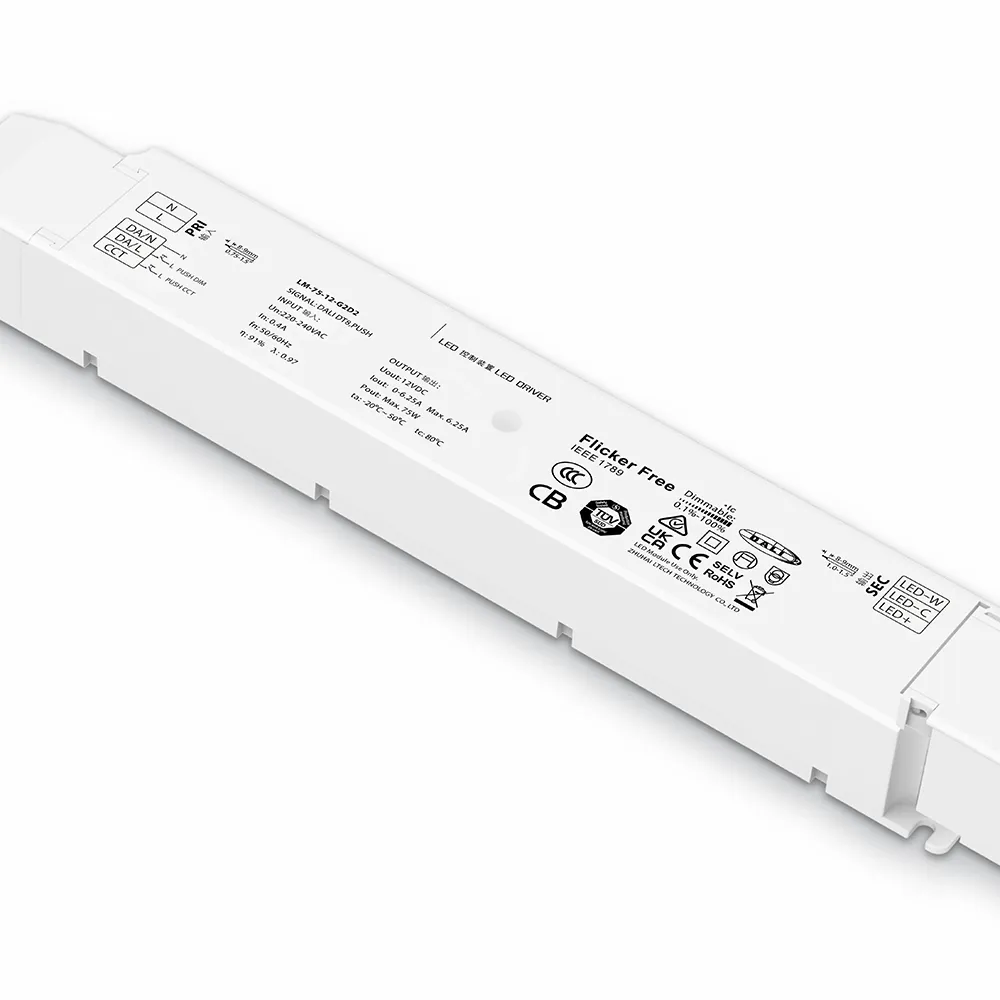 A STARWELL kiváló minőségű, 75 W-os, 12 V-os állandó feszültségű DALI dimmelhető LED-illesztőprogramja egy nagy teljesítményű tápegység, amelyet professzionális LED világítási rendszerekhez terveztek. Stabil 12 V DC kimenetet biztosít 75 W maximális teljesítménnyel, megbízható működést biztosítva sokféle alacsony feszültségű LED-alkalmazáshoz, beleértve a szalaglámpákat, jelzőtáblákat és dekorációs világítást. A beépített DALI fényerőszabályzó kompatibilitásnak köszönhetően a LED-meghajtó precíz digitális vezérlést és zökkenőmentes integrációt tesz lehetővé az intelligens világítási hálózatokba.
