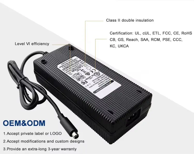 Globális kompatibilitás és robusztus biztonság: Az univerzális 100–240 VAC bemenettel zökkenőmentesen működik világszerte. A fejlett háromfokozatú intelligens töltés (CC/CV) optimalizálja az akkumulátor állapotát, miközben átfogó védelem – beleértve a rövidzárlatot, a túlfeszültséget, a túlmelegedést és a túlterhelést – biztonságos, gondtalan működést biztosít. A strapabíró ház tűzálló anyagokból készült a fokozott megbízhatóság érdekében az igényes környezetben.