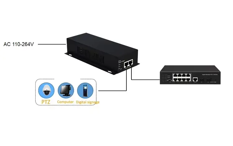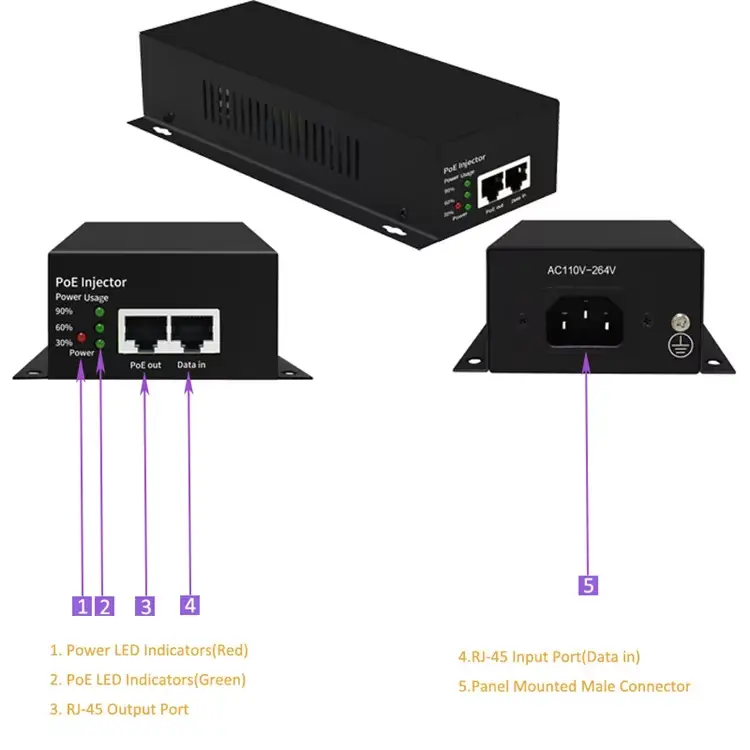 Professzionális tápegység-gyártóként Kínában a Starwell bemutatott egy 90 W-os fémházat, IEEE802.3bt Gigabit PoE Injectort, amely teljes mértékben megfelel az IEEE 802.3bt szabványnak. Támogatja az 52 V-os kimenetet, portonként 90 W maximális teljesítményt biztosít, és visszafelé kompatibilis a 802.3af/at szabványokkal.