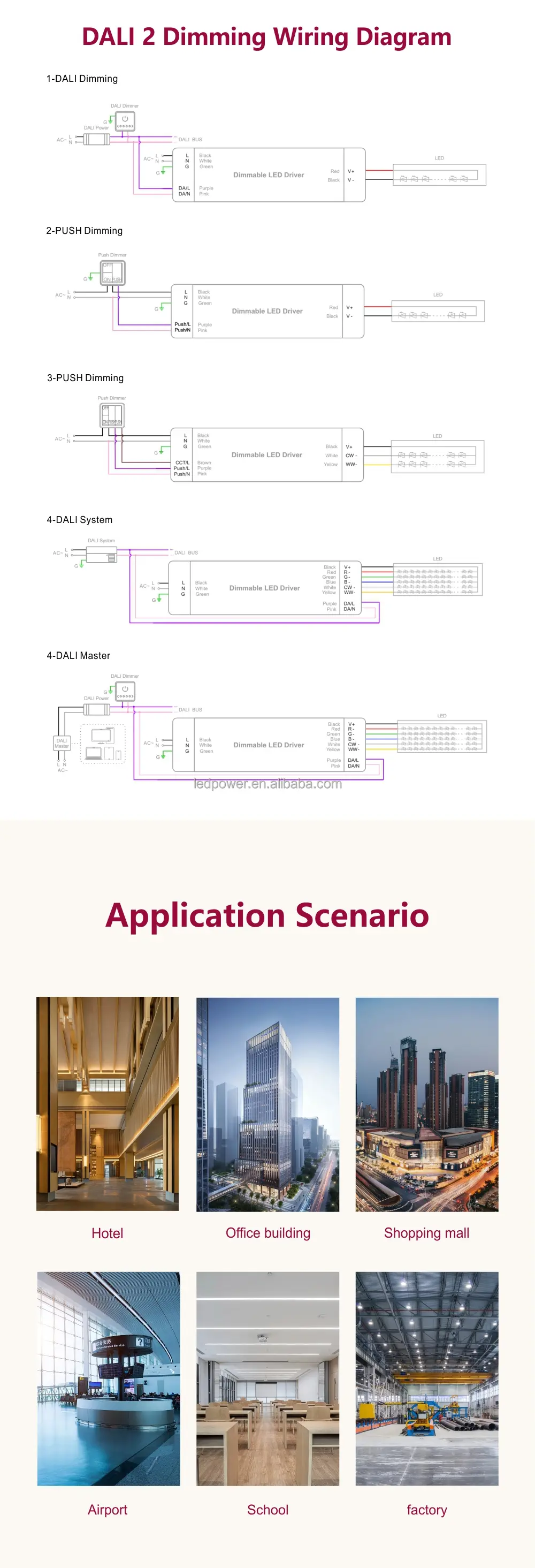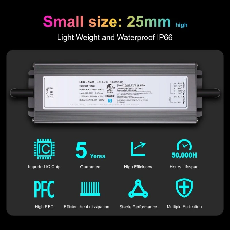 Legyen szó egyszerű egyszínű hőmérséklet-szabályozásról vagy összetett 5 csatornás Rgb Cct jelenetprogramozásról, ez a meghajtó tápegység stabilan reagál a szabványos DALI utasításokra. Ez azt jelenti, hogy könnyedén integrálhatja bármely DALI intelligens világítási rendszerbe, így csoportvezérlést, időzített programozást és érzékelőkapcsolatot érhet el. Megbízható, 12-24 V-os állandó feszültségű, szabályozható DALI LED-meghajtóként kiemelkedő elektromos teljesítménye biztosítja, hogy a LED-es fénycsíkok hosszú ideig stabilan és hatékonyan működjenek.