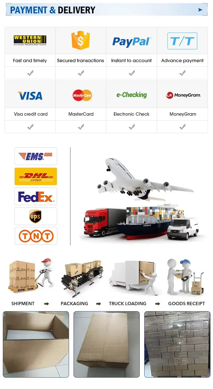 A4: Kis megrendelések expressz szállítással (FEDEX, DHL, EMS, TNT). A nagy megrendelések tengeri vagy légi úton szállíthatók. FOB ár elérhető. Használhatja a szállítmányozóját vagy a miénket.