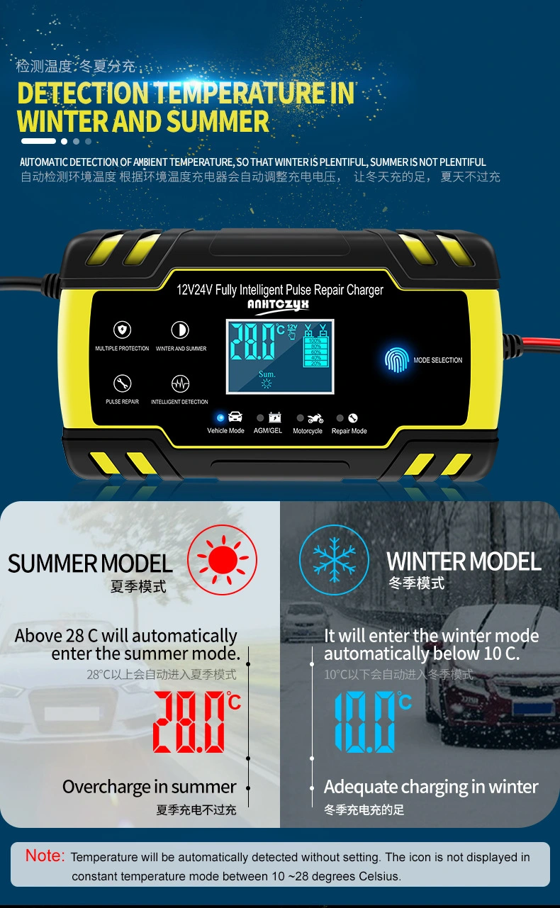 · Automatikus karbantartási mód: Csepptöltőként és hosszú távú akkumulátorkarbantartóként működik, ideális szezonális vagy ritkán használt járművekhez.