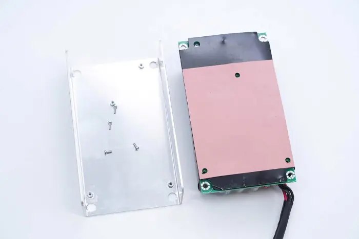 A PCBA modulon alumíniumötvözetből készült hűtőborda is található, a tápegységeket pedig csavarokkal rögzítik.