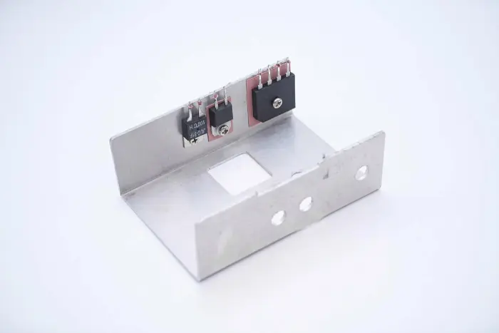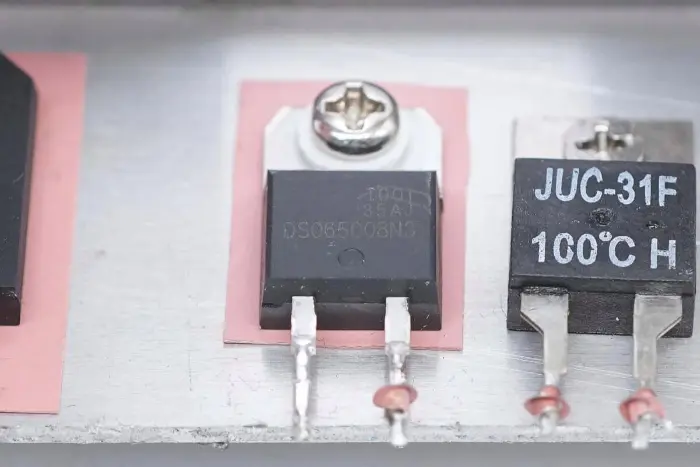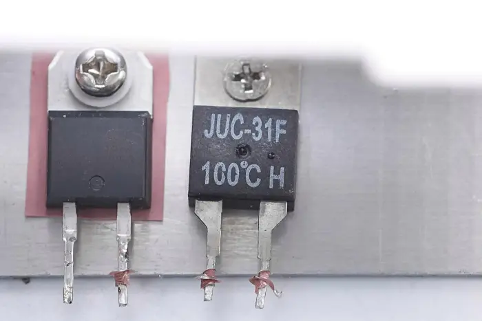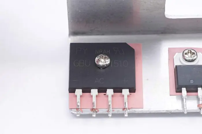 Az egyenirányító híd, a PFC egyenirányító dióda és a hőkapcsoló a hűtőbordára van rögzítve.