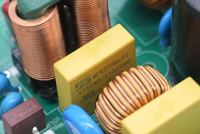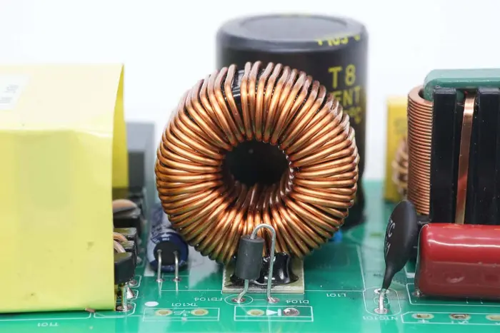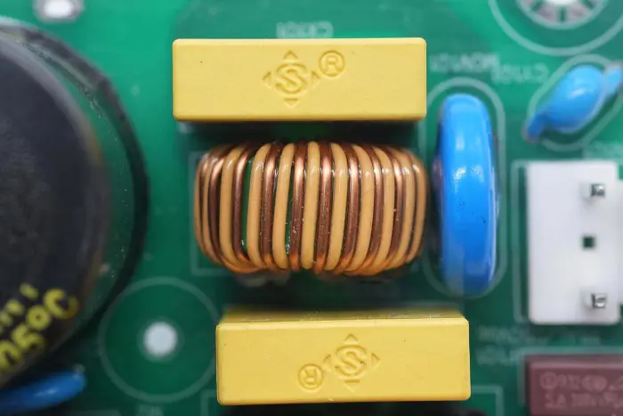 Közeli kép a kimenő mágnesgyűrűs szűrő induktoráról.
