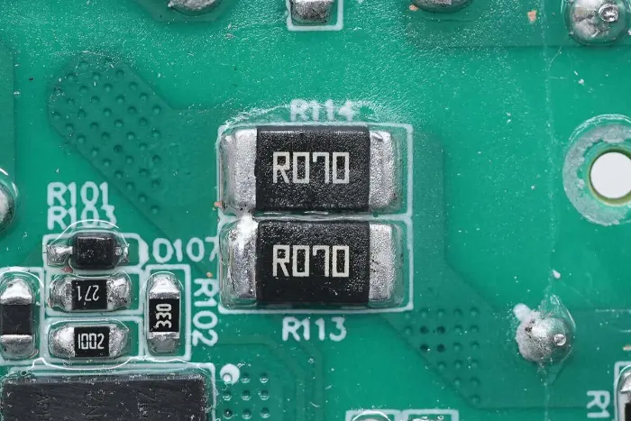 Két 70mΩ-os ellenállás van párhuzamosan csatlakoztatva a kapcsolóáram érzékelésére.