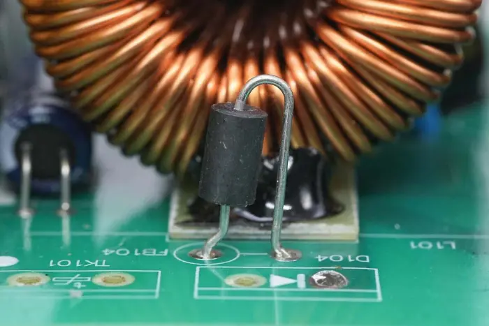 A PFC egyenirányító dióda mágneses gyöngysorral van sorba kötve.