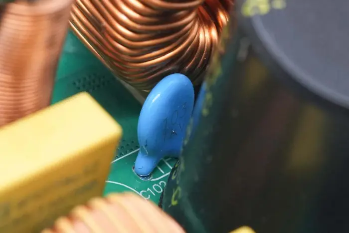 A kerámia kondenzátorok az elektrolit kondenzátorokkal párhuzamosan kapcsolódnak, 0,01 μF 1KV specifikációval.