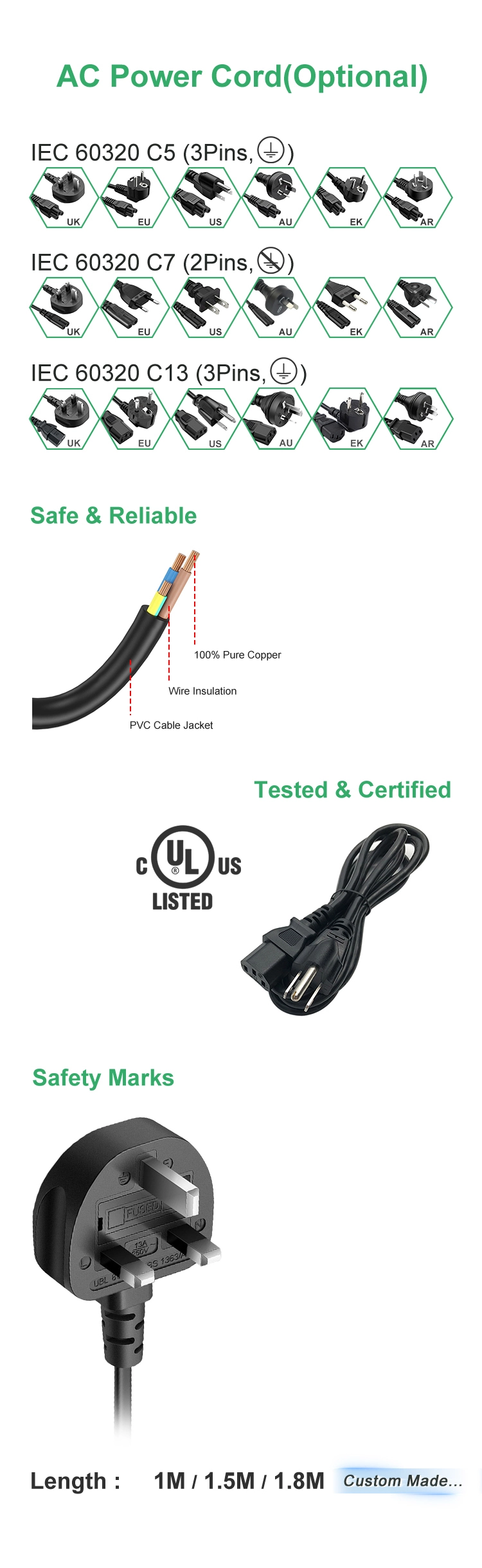 * További egységek a 200 W-os sorozathoz: 5V/8V/9V/12V/13.5V/15V/18V/19V/24V/25V/30V/36V/29V/30V/42V/48V elérhető * Biztonság: OCP/OVP/OTP, SCP, automatikus túlterhelés-lekapcsolás, túlfeszültség-lezárás, automatikus hőlekapcsolás. * Széleskörű kompatibilitás: LED szalagfények, 3D nyomtató, ham rádió adó-vevő, CCTV kamerák, autó mélynyomó erősítő, audio erősítő, vezeték nélküli router, ADSL Cats, párásító, HUB, billentyűzet, BT hangszóró, monitor, webkamera, DVR, NVR, audio/video tápegység