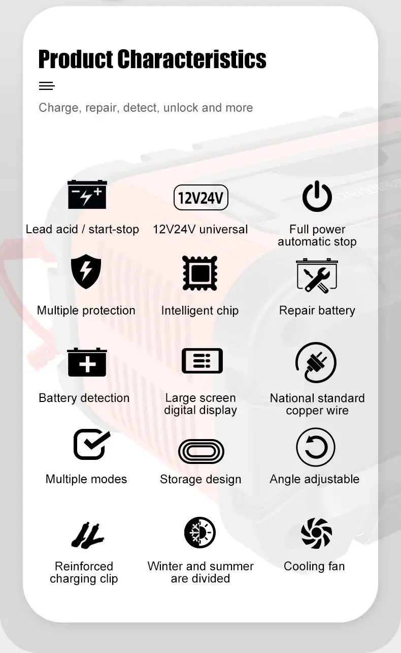 A TK700 univerzális 12 V-os 24 V-os ólom-savas akkumulátortöltő a Starwell professzionális gyártója és beszállítója Kínában, egy nagy teljesítményű intelligens töltőrendszer, amelyet az ólom-savas akkumulátorok széles körére terveztek. Autóipari, tengeri, ipari és vészhelyzeti energiaellátási alkalmazásokhoz készült, és az automatikus feszültségérzékelést, a fejlett javítási technológiát és a stabil kimeneti vezérlést egyesíti a megbízható energia-visszaállítás és az akkumulátor hosszú távú karbantartása érdekében. A TK700 univerzális 12 V-os 24 V-os ólom-savas akkumulátortöltőt úgy tervezték, hogy gyors töltést és mély karbantartást biztosítson egyetlen kompakt egységben.