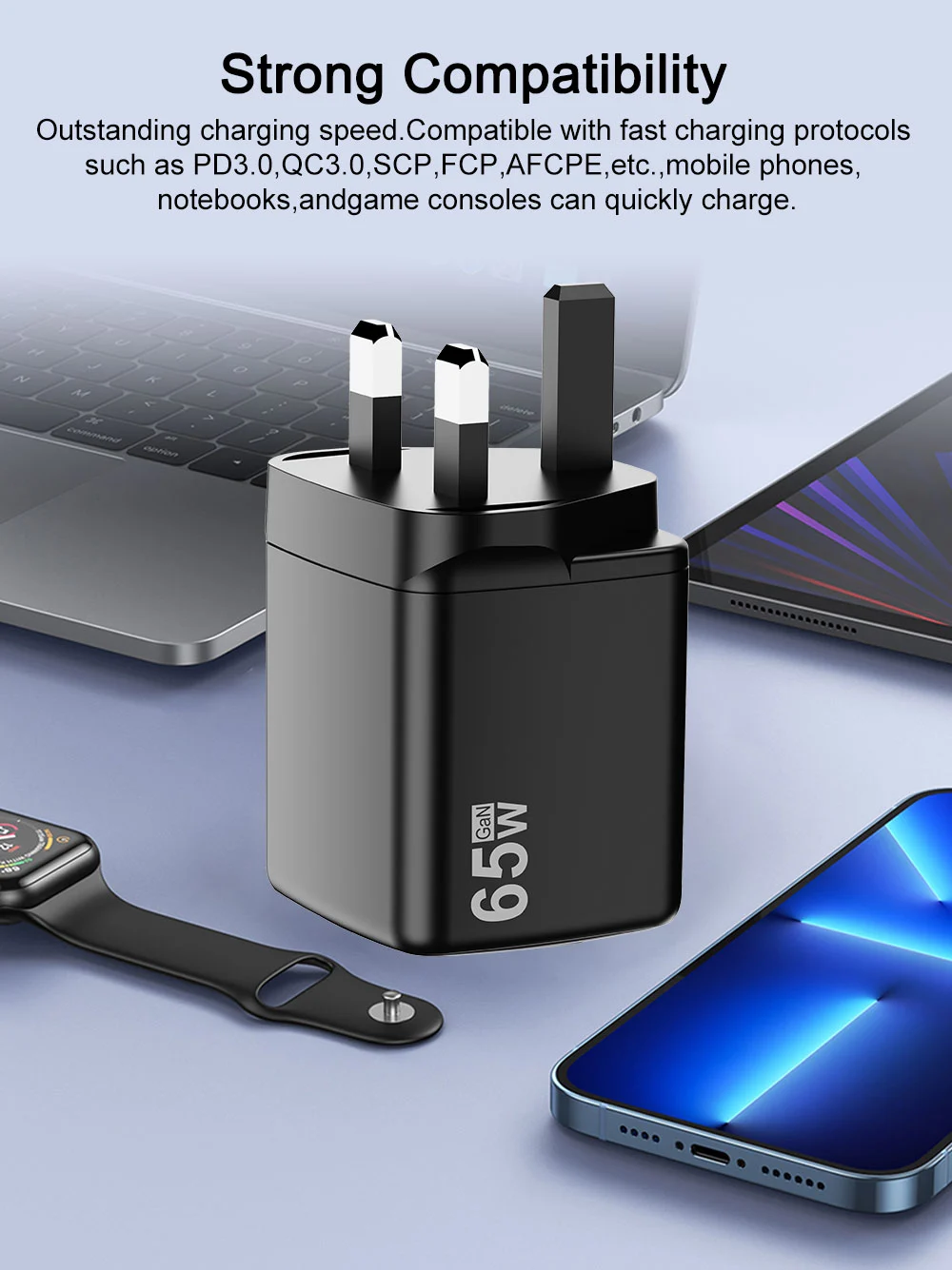 UK csatlakozó típusú 65w-os gyorstöltő Specifikáció: