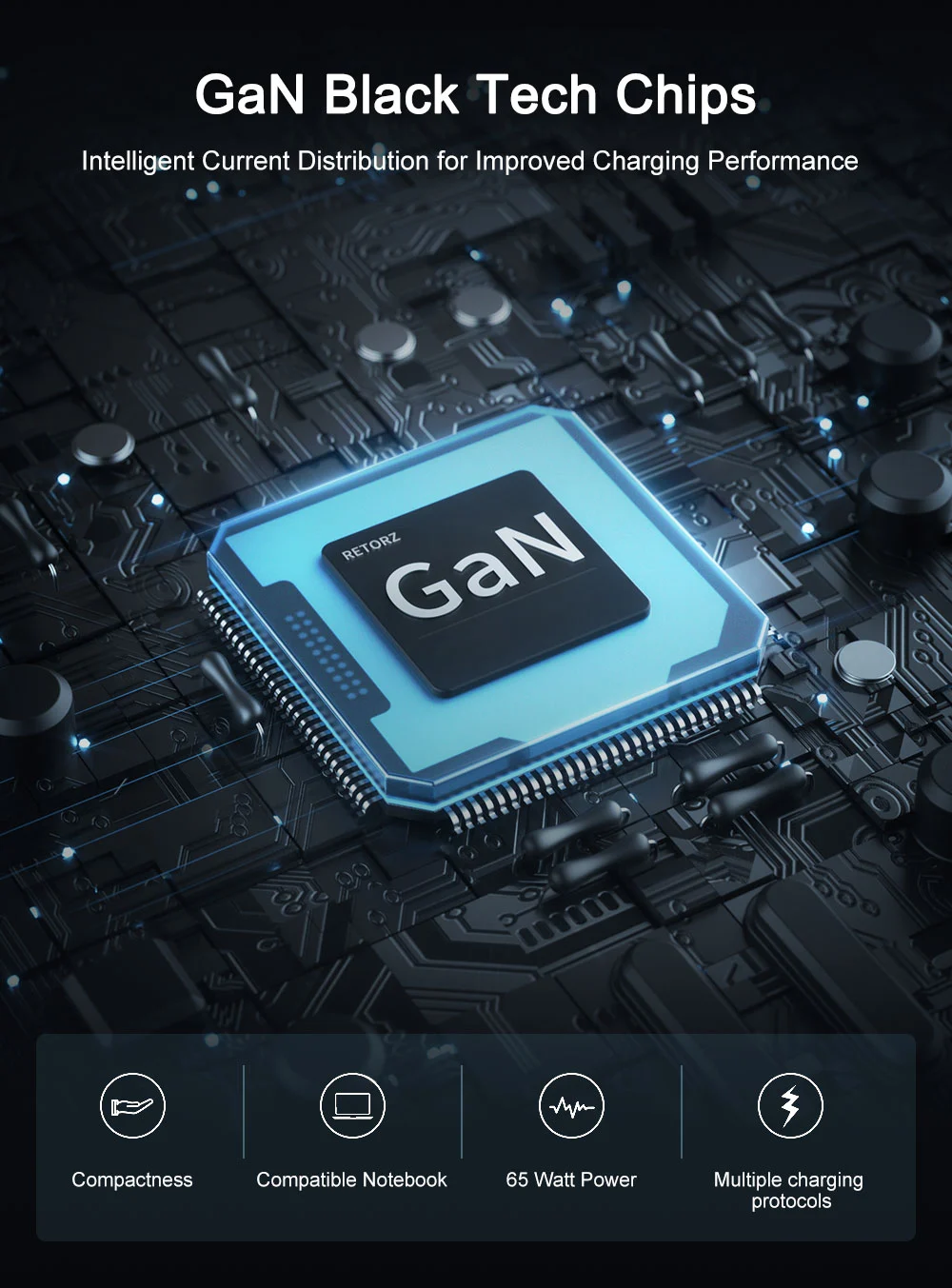 - Gyors töltés: A 65 W-os kimenet lerövidíti a töltési időt, így eszközei gyorsan bekapcsolódnak.